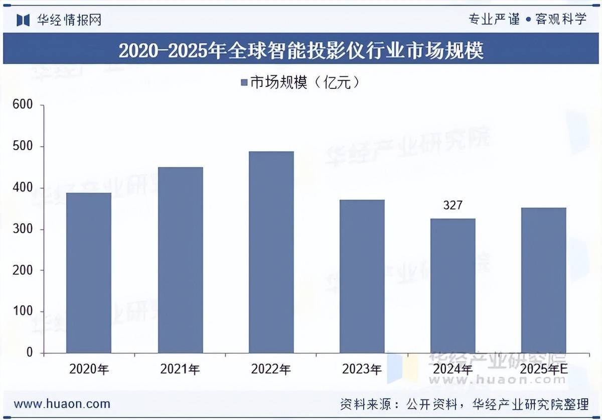 2024年全球智能投影仪行业市场规模稳步攀升至327亿元,受益于消费电子智能化升级浪潮、多场景应用拓展及政策红利释放,市场需求持续旺盛。展望2025年,随着技术迭代加速、产品形态多元化及下沉市场与海外市场拓展,预计行业市场规模将进一步增长至353亿元。